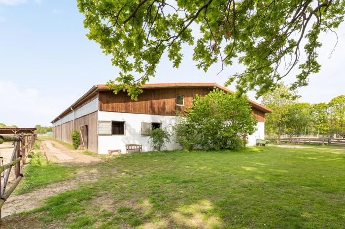 Der Hof verfügt über 27 großzügige Boxen, großflächige Paddocks, eine 20x40m große Reithalle mit Beregnungsanlage, einen 60x80m großen, bewässerten, Außenreitplatz, ein Roundpen, eine 800m lange Reitbahn sowie eine Reiterstube, ein Solarium und nahezu endlos Grünfläche und Weideland. Weitläufige Reitwege direkt am Hof angrenzend laden zu langen Ausritten ein. Ferienwohnungen runden das Angebot ab. Jetzt fehlt nur noch die Ovalbahn ![]()