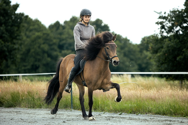 Gloa ist eine sechsjährige Stute aus belgischer Zucht, die mit ihrem unerschrockenen und freundlichen Wesen sofort begeistert. Sie ist fünfgängig veranlagt und zeigt eine klare Gangtrennung sowie viel Fluss im Tölt, der sowohl entspannt am langen Zügel durchs Gelände als auch auf der Bahn Freude bereitet. Mit ihrem mittleren Temperament lässt sie sich leicht regulieren und ist jederzeit freundlich und unkompliziert im Umgang. Gloa ist ein echtes Luxusfreizeitpferd, das die langen Ausritte am liebsten genießt, sich aber auch als vielversprechendes Turnierpferd weiterentwickeln lässt. Mit ihrer Ausstrahlung, dem motivierten Wesen und der Qualität ihrer Bewegungen ist Gloa ein Pferd, das Freude macht – sowohl für Reiter, die entspannte Geländeritte lieben, als auch für diejenigen, die ihre Turnierambitionen fördern möchten.
