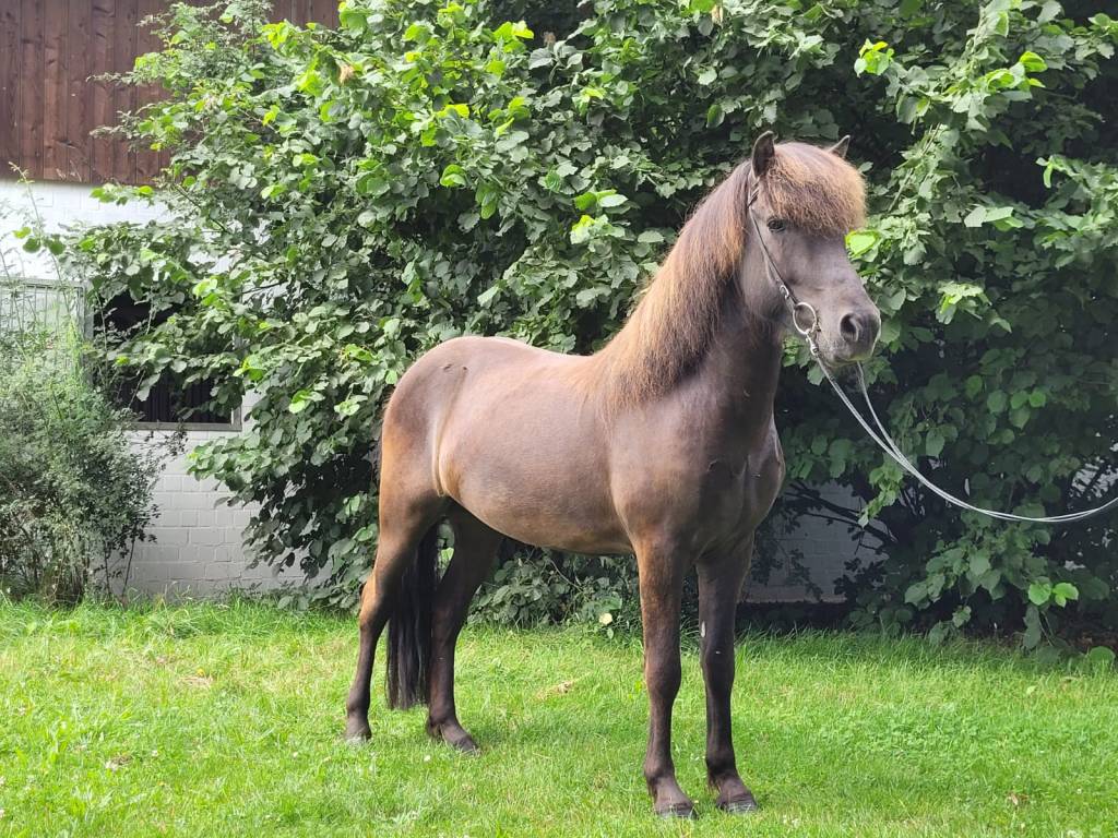 Seinem Alter entsprechend ist er schonend ausgebildet und kennt die Anfänge der dressurmäßigen Arbeit und verfügt über ansprechende Bewegungen bei gutem Schwung und tollem Fluss in den Grundgangarten, sowie akzentuierten Bewegungen im Tölt.