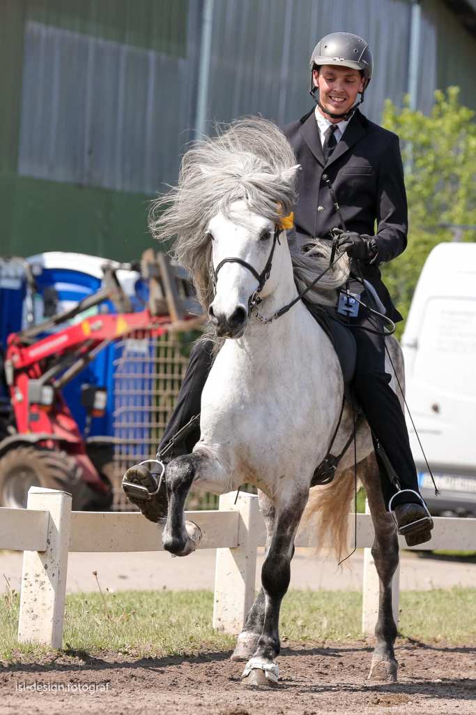 Besonders die Ausbildung von jungen Pferden und das Anreiten bereitet mir große Freude. So konnte ich die letzten Jahre schon eine große Vielzahl an Pferden mit viel Ruhe auf dem Weg zum Reitpferd begleiten. Einige dieser jungen Talente konnte ich, nach ihrer Grundausbildung, auch erfolgreich in der Futurity, im Sport oder auch auf FIZOs vorstellen. Besondere Höhepunkte waren hier mit Þormar frá Prestsbæ die Futurity Fünfgang mit 7,17 oder auch meine ersten FIZOs mit Tigull vom Petersberg ( 8,13 Total (w/o pace)) und Baltasar frá Blesastödum ( 8.16 Gesamt ). Auch im Sport konnte ich schon einige Erfolge erzielen und z.B. Pferde wie Börkur frá Efri-Rauðalæk, Þormar frá Prestsbæ und Höfdingi frá Enni in den letzten Jahren im erflolgreich im Fünfgangpreis, der T2 oder der T1 vorstellen.
