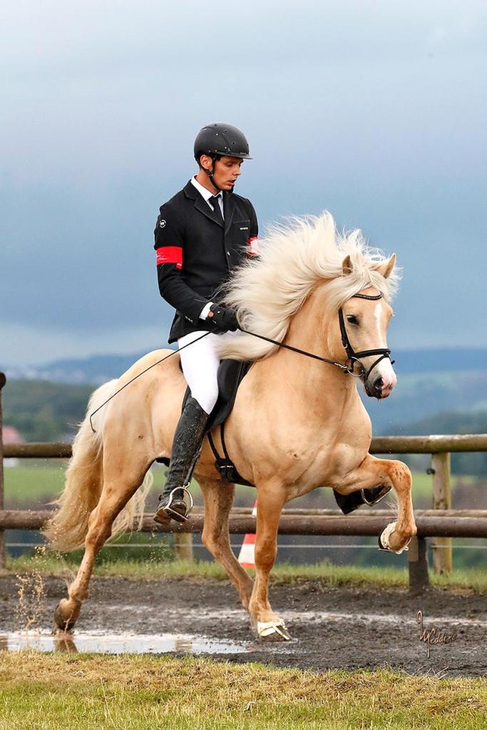 Þormar ist ein wahres Zuchtjuwel! Er vereint eine wahnsinnig gute Abstammung mit richtig guter Eigenleistung und ist dazu ein absoluter Hingucker. Dieser junge Hengst mit Blesse konnte bereits 5-jährig selbst eine FIZO mit 8.37 als Gesamtnote ablegen, dabei erhielt er u.a. die 9 für den Rennpass! Er ist charmant, höflich und will jederzeit gefallen! Er selbst erreichte bereits Noten von 6,83 im Fünfgangpreis, mit 7,5 auf seinen Tölt und bis zu 8.0 auf seinen Renpass.